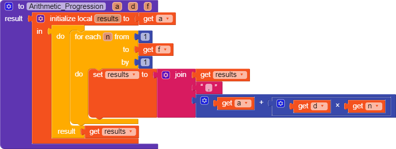 as input (int) and returns the terms of A.P.(arithmetic progression) in CSV format.