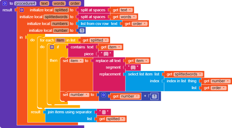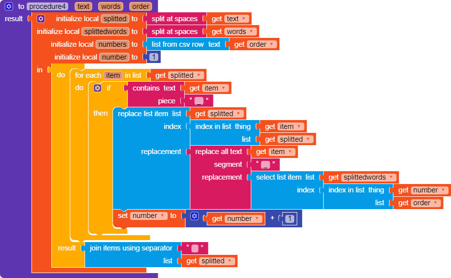 and tips, use split at spaces instead of split, it saves blocks ![]()