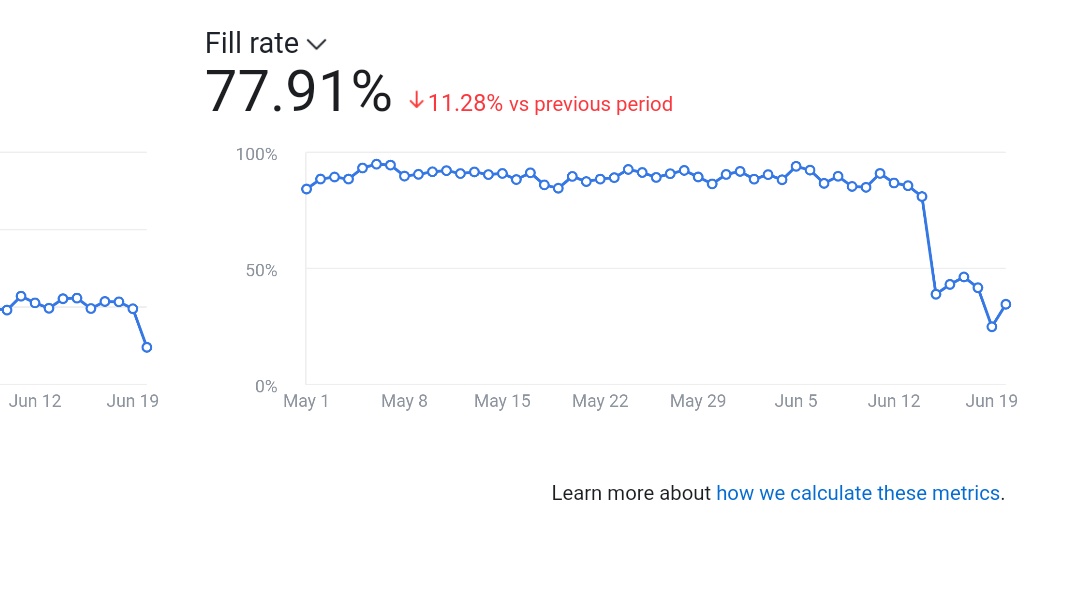 Fill rates change because of algorithm changes with suppliers, target changes, content is stale, low inventory for the content etc.