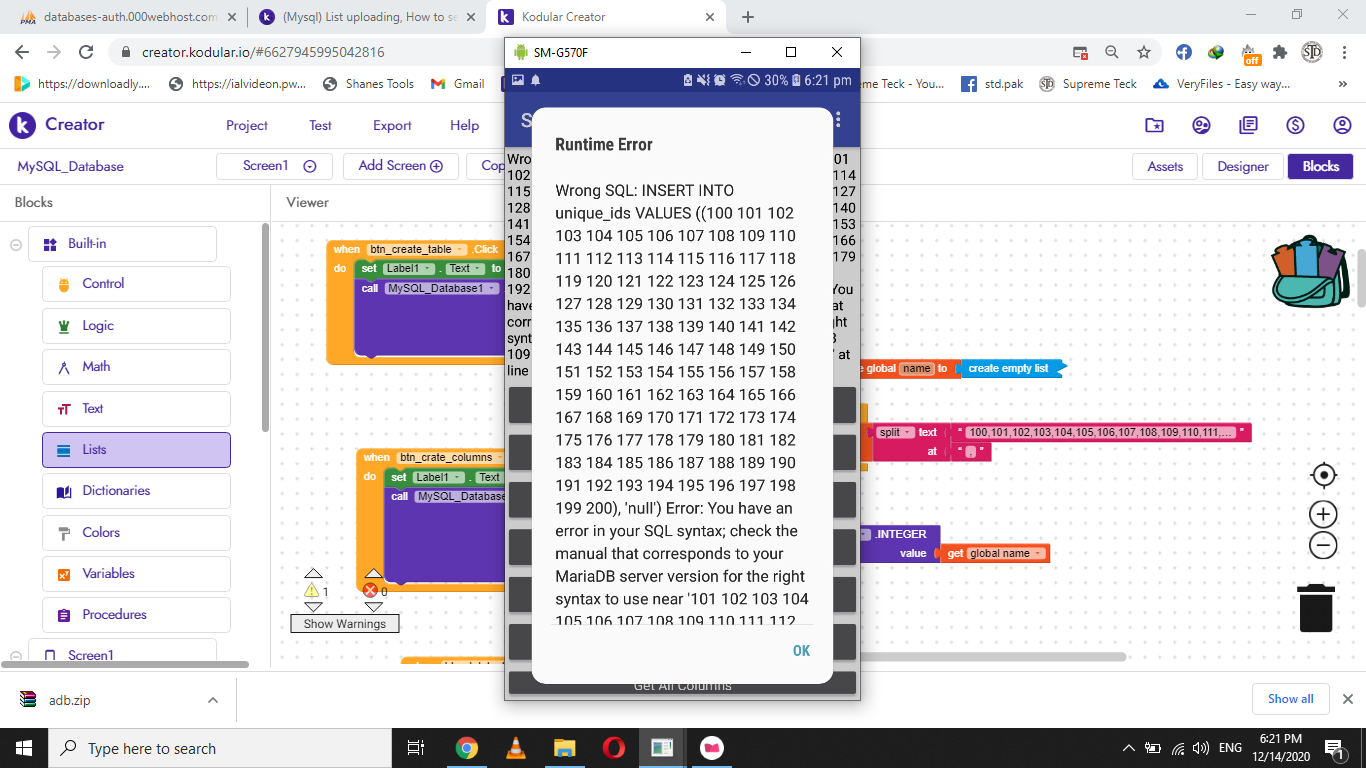I want that when I click Click (Create columns) it Saves all those number Which I want in a List and there status to null but it only save one value and when I Click (Create columns) again it save the same value again like I have shown in the pictures.