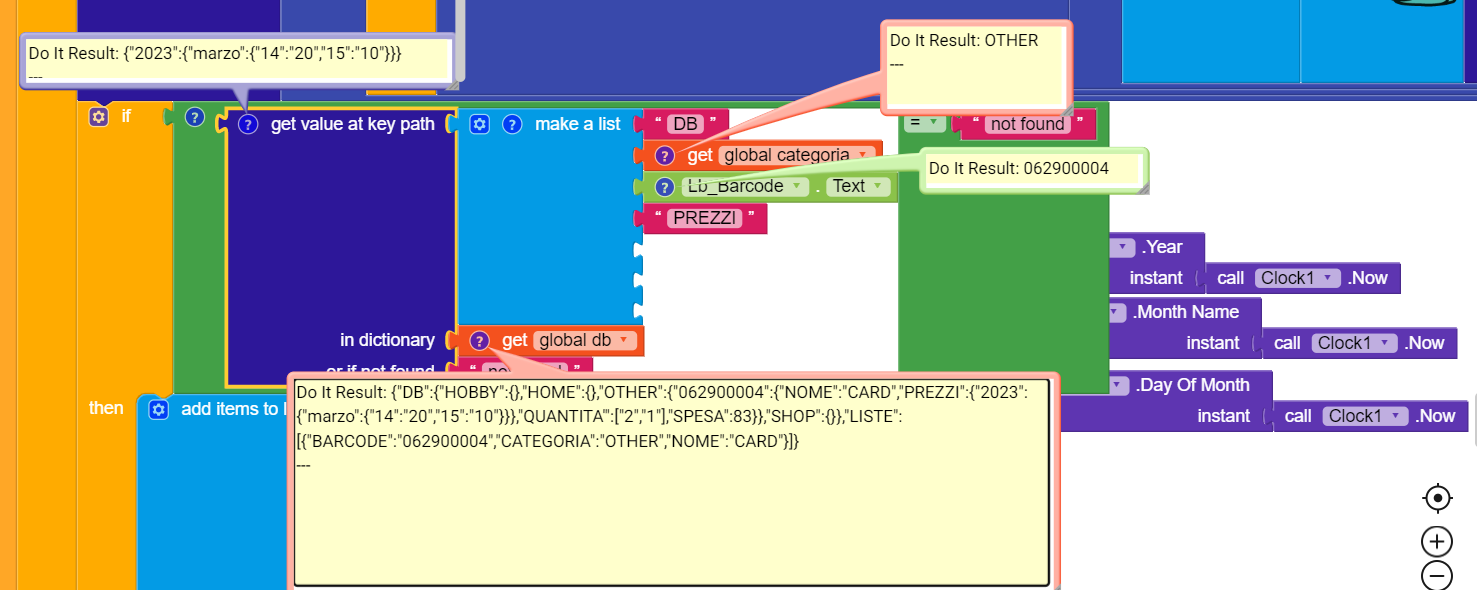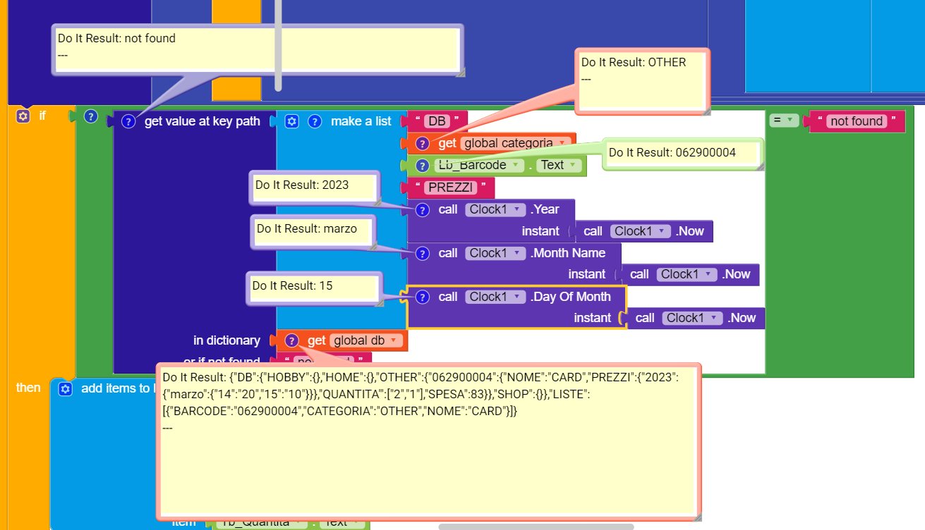 Well if I test the code in the day of the first add (when it doesn’t exist) and try to add a new one (changed the time with the add day block) it works fine . I tested yesterday, you can see in the db 2 items under PREZZI , 14 and 15, with their values.