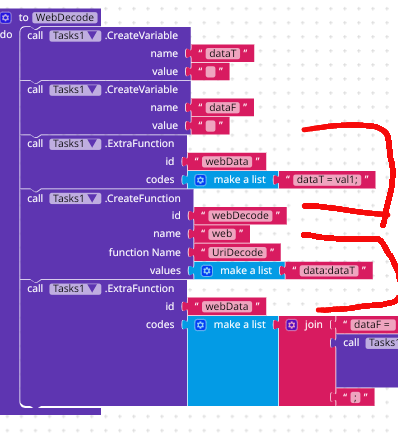 First, invoke it singly as return true :: funtion(webDecode) then put your second element.