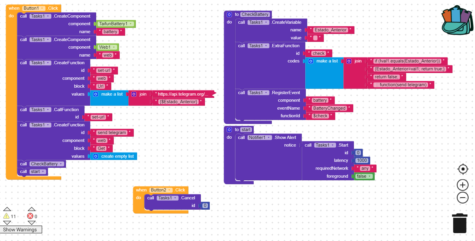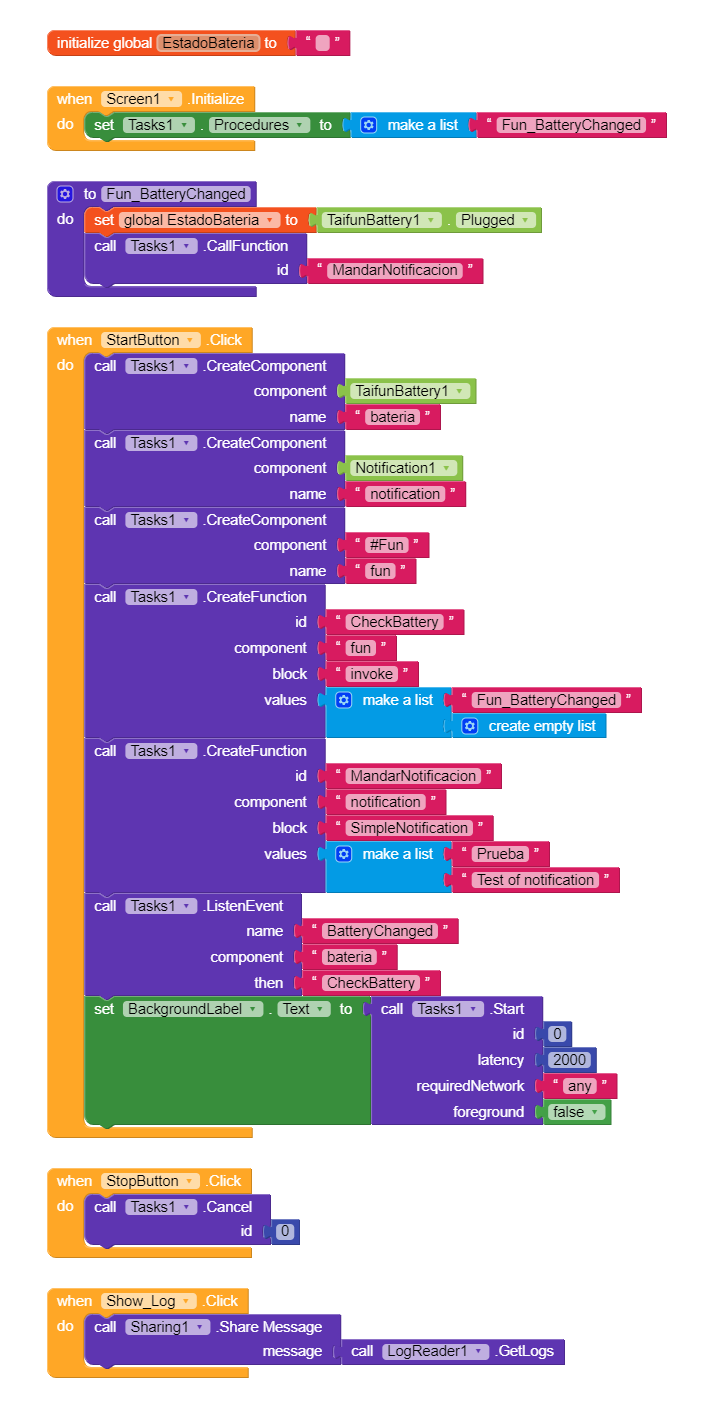 Hi! Yes, the notifier is working. If in the “.ListenEvent” I change the function “CheckBattery” for “MandarNotificacion”, it sends a notification in every change of battery status.