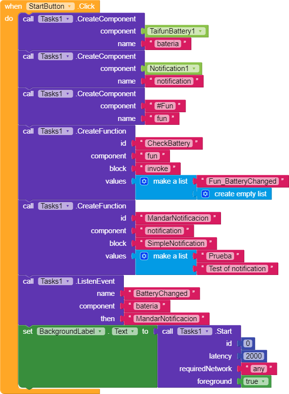Thanks for this extension. I am trying to build an app to use the cellphone as a detector of electrical power blackouts that sends a message to a bot when that happens. Thus, I need to run the app in the background of the cellphone. I use the extension TaifunBattery to check if the cellphone is charging or not.