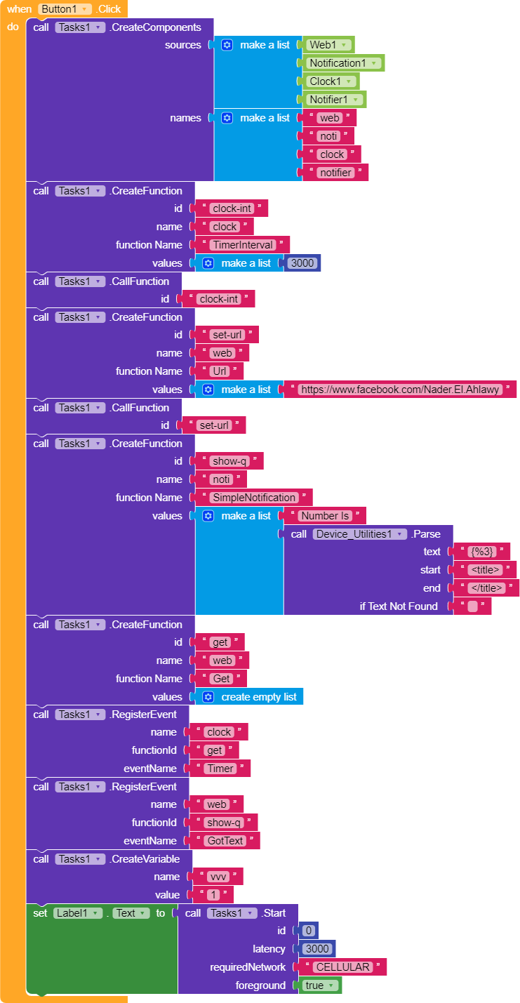 I want the application to read the source of a specific site in the background.. and if it finds a certain sentence and let it (the text is here) perform a certain function..