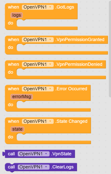 | VpnPermissionGranted | Event raised when VPN permission is granted. Vpn can be started only in this case. |