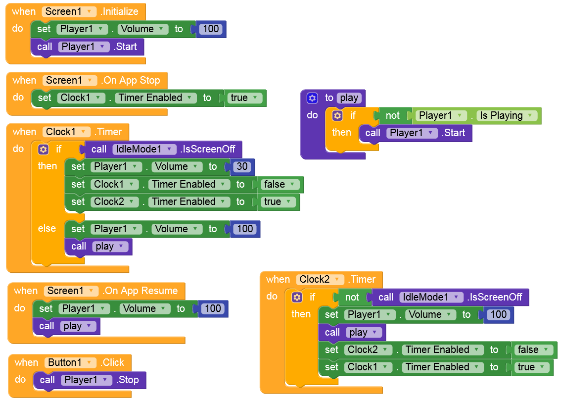 Can You Show me Some Blocks How it will Be used for Playing Music on unlocking Phone.