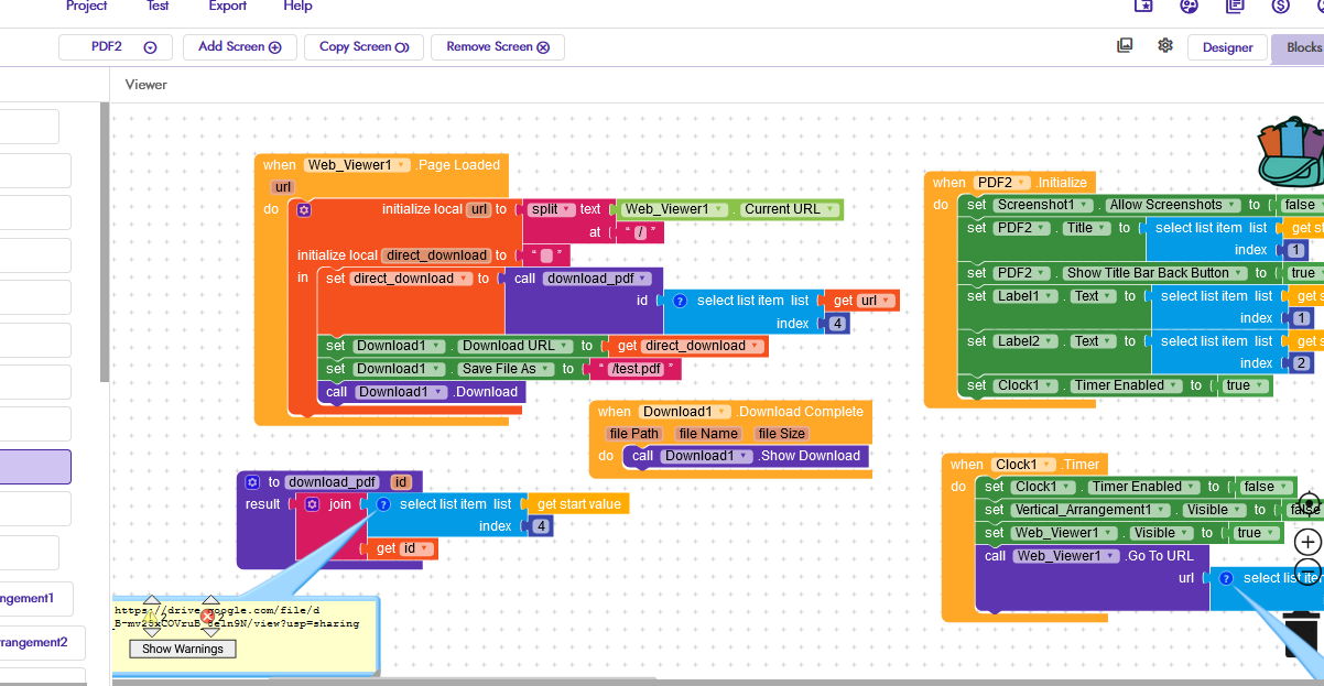 this blocks after editing is there any problem in global variable pdfview url before test it in companion??