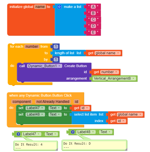 Simple approach, create dynamic buttons according to the lenght of a list. When any button click depending the id I set label’s text