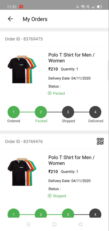 - User can track their order from My order section of the app. And user will get the notification of their order too.