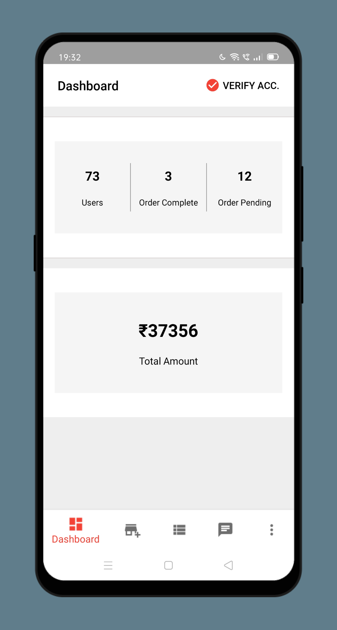 - Dashboard (Total users, Total Pending orders,. total completed orders, total earning)