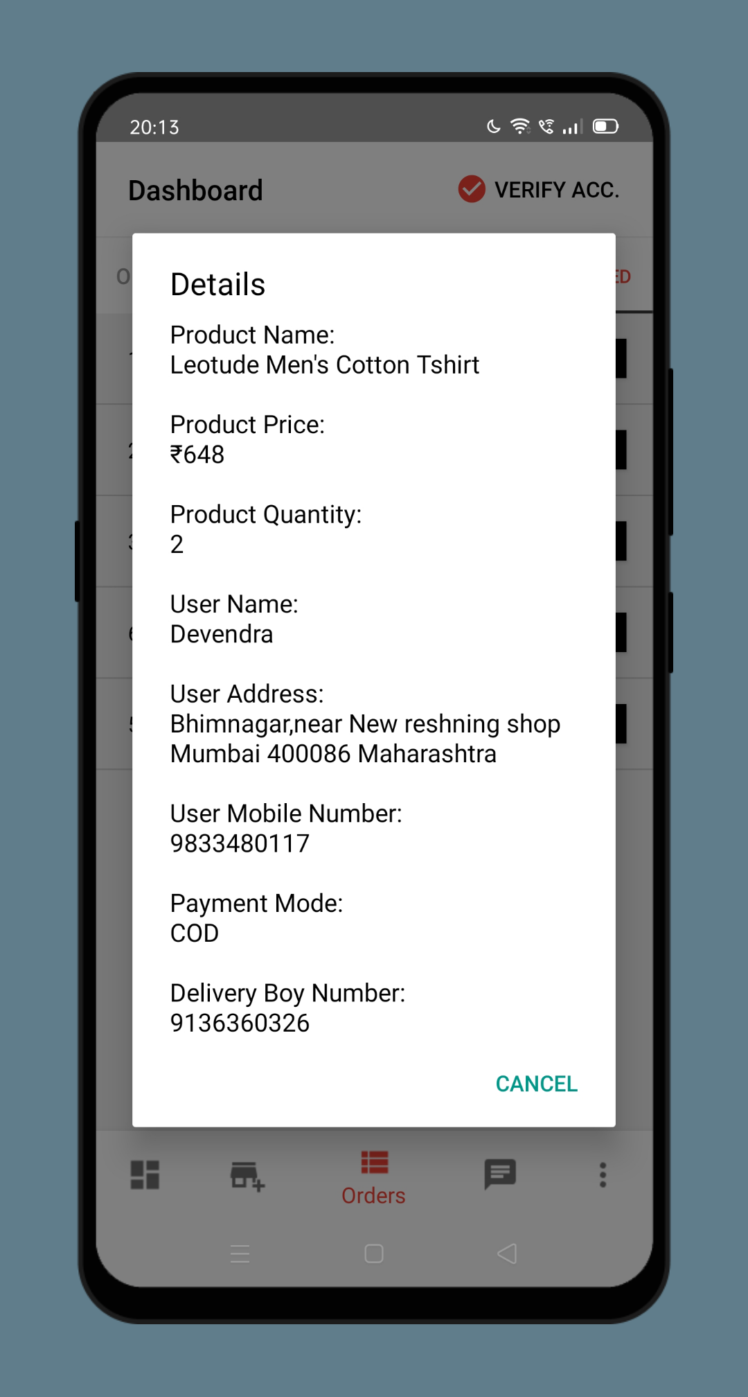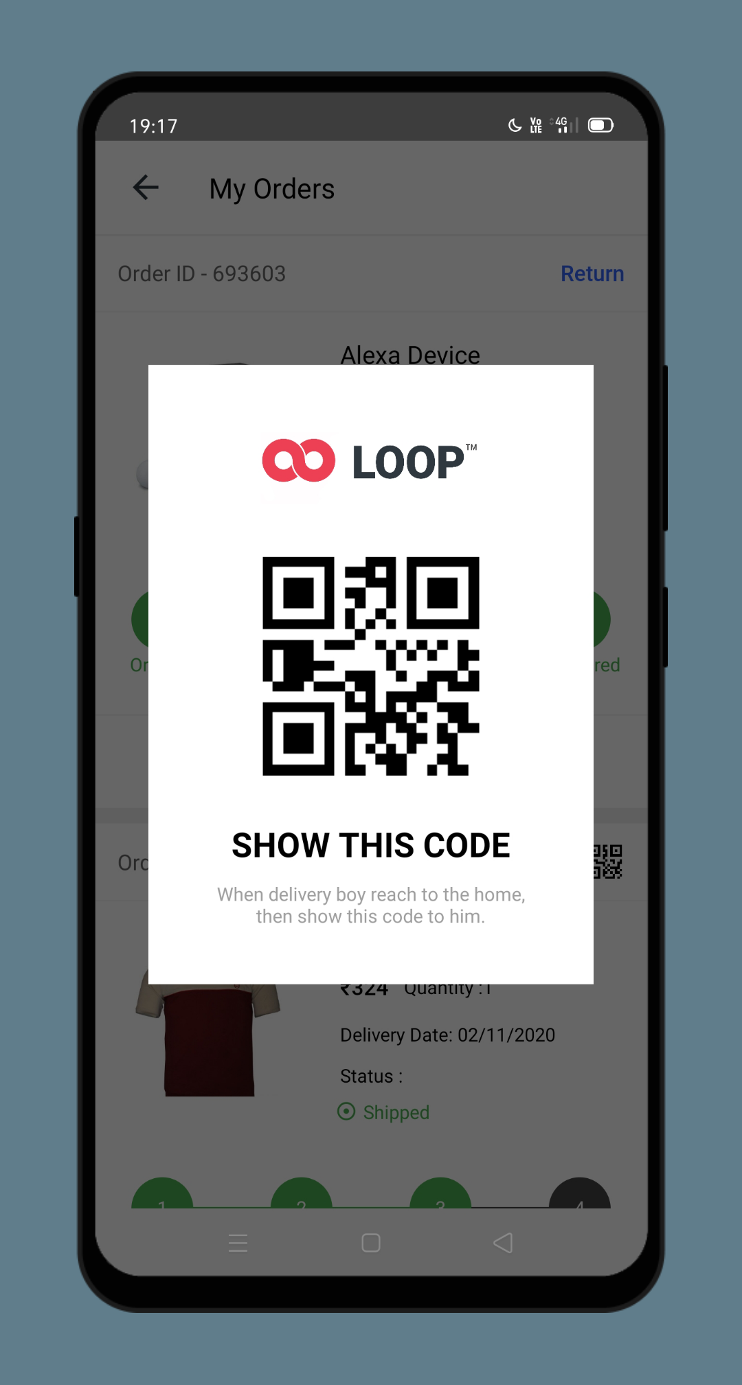 Once partner reaches to the home of the user then he need to scan the Qr code from users app fro that particular order only then the users status will mark as delivered.and the QR Code has secured details)