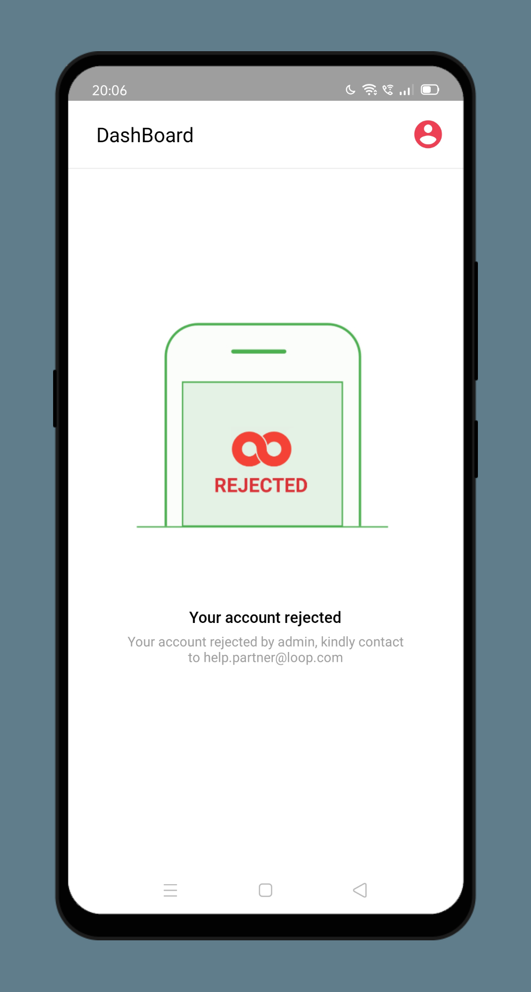 Partner will see the status of their account if admin reject his account then he will get the message like your account rejected, if admin approved then he will get message like your account approved.