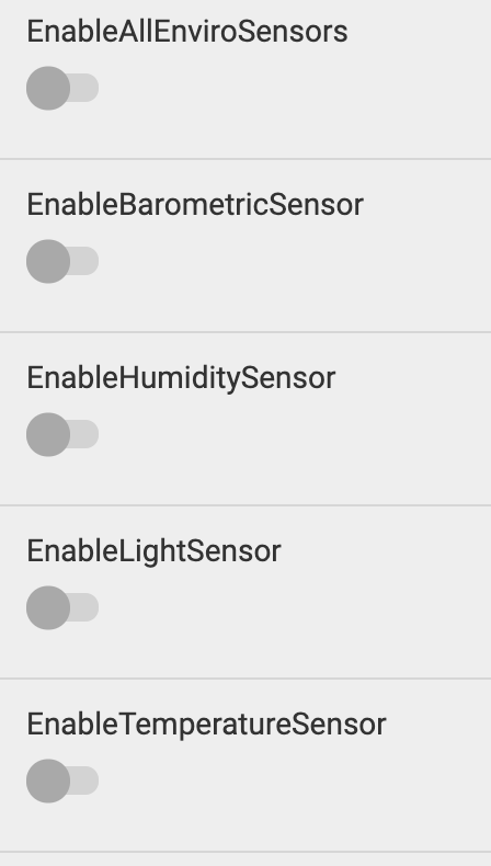 Here we provide a list of all sensors available on the device, and a list of just the environmental ones that are available. The values are returned as a string.
