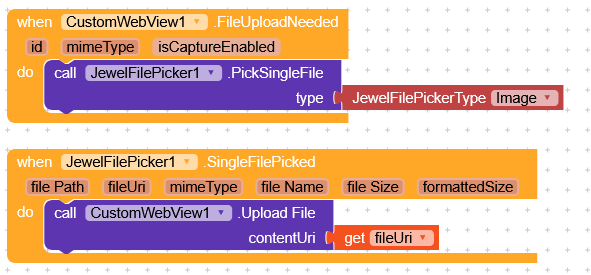 I tried to add the Blocks but it doesnt work mybe because they use a VerticalArrangment instead of the Coustom Webviewer and they dont use the JewelFile extension. So what should i do??