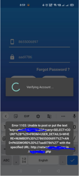 Use Screen Error Block Set if error=1103 load data again .also you can dismiss the progress bar .its come several time if you are using mysql database with taifun mysql script ,