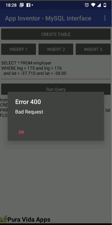 I’m using this .aia file downloaded from App Inventor Tutorials and Examples: MySQL | Pura Vida Apps