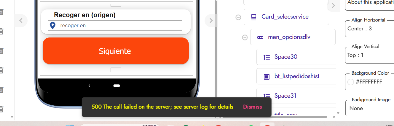 500 – The call failed on the server; see server log for details.