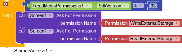 just because the app is trigger the error 908_WRITE_EXTERNAL_STORAGE that’s why I had tried to solve this error using those blocks, but the problem persists. and because of that i had tried to use the bodymindpower extension, but this didnt solve the problem neither.