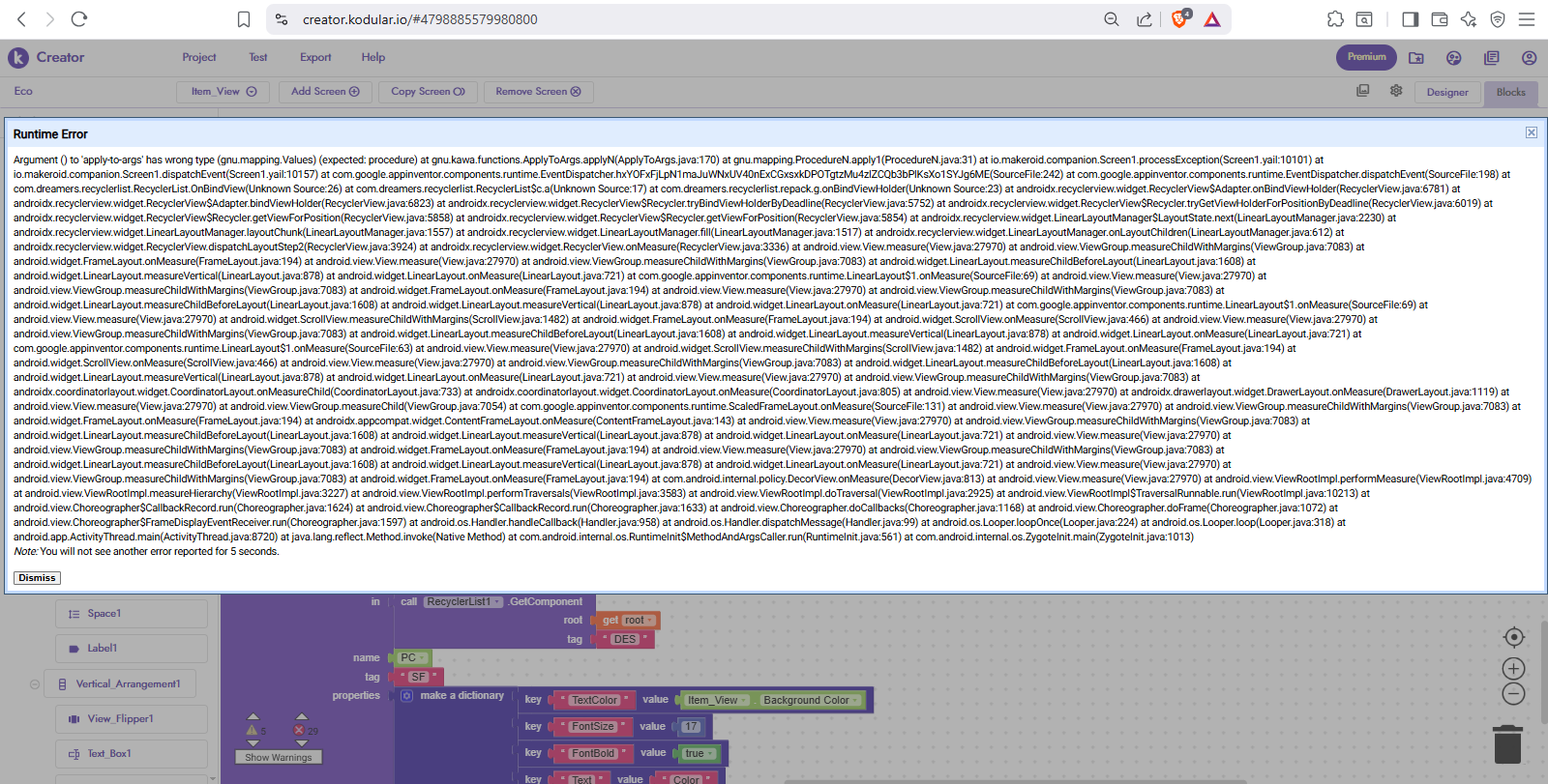 Runtime Error in Latest Kodular Update (apply-to-args issue)