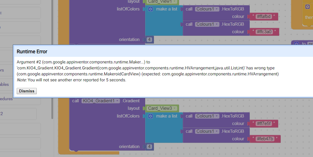 This extension makes gradients in an arrangement not a cardview. You can see that in the error message.