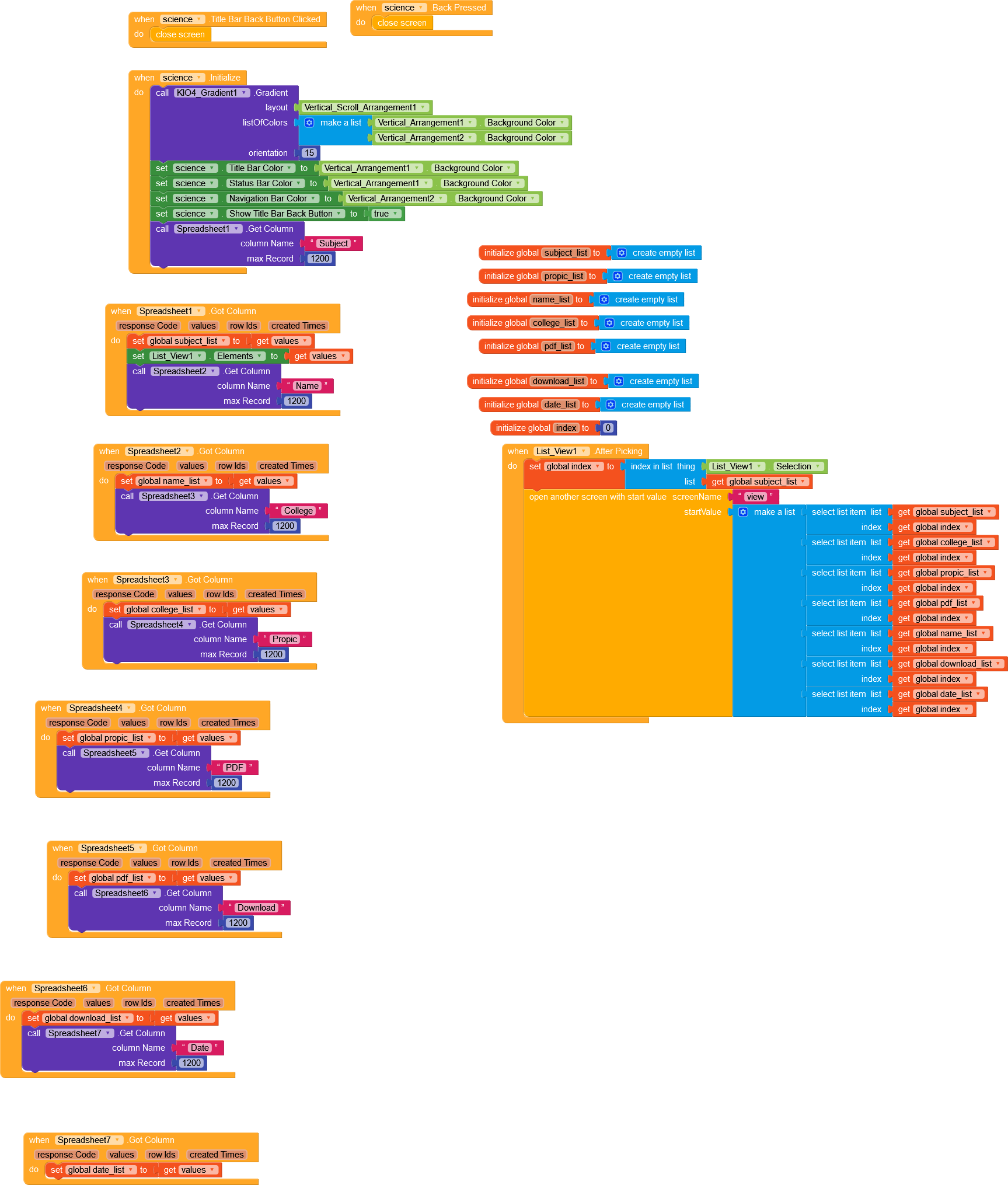 In this blocks I’m loading data from airtable to show them in listview. They are working fine. But I’m having trouble in the below screen. Data isn’t loading properly from database and I’m facing run time error.