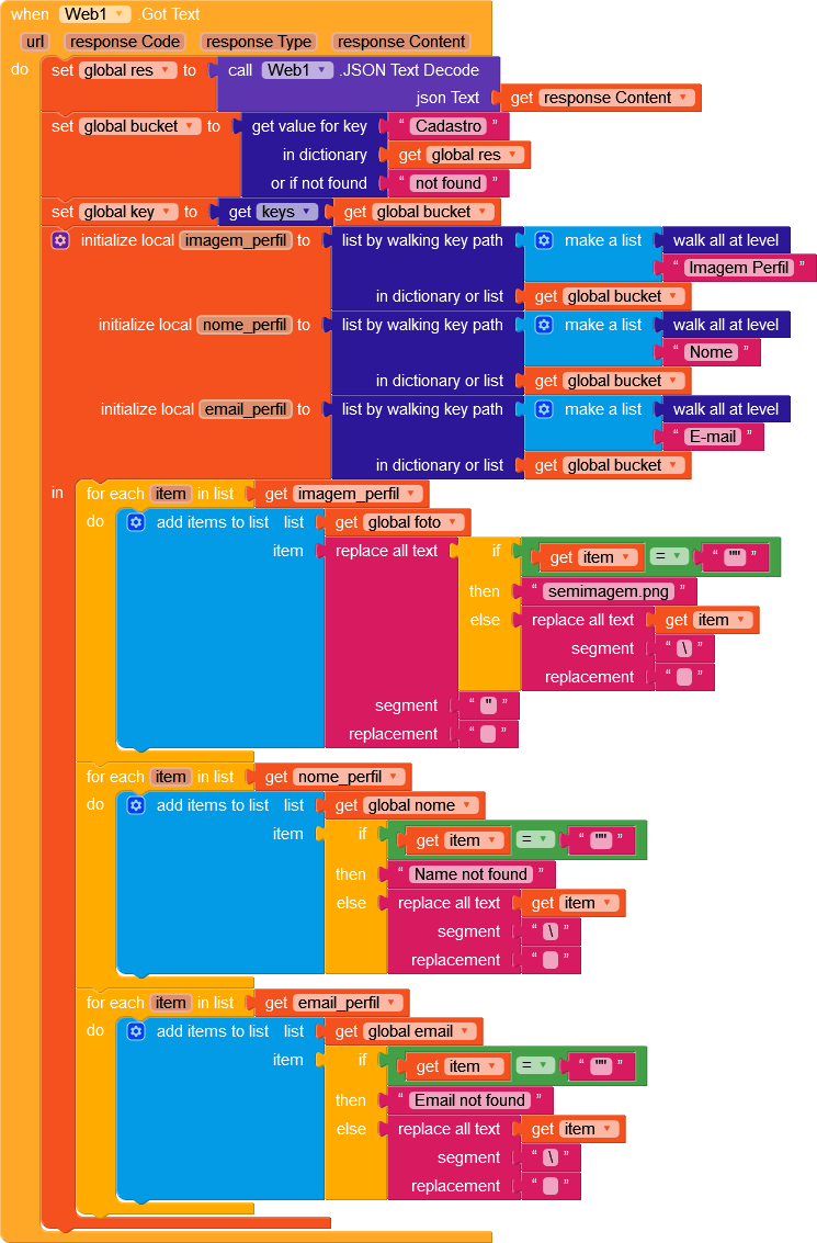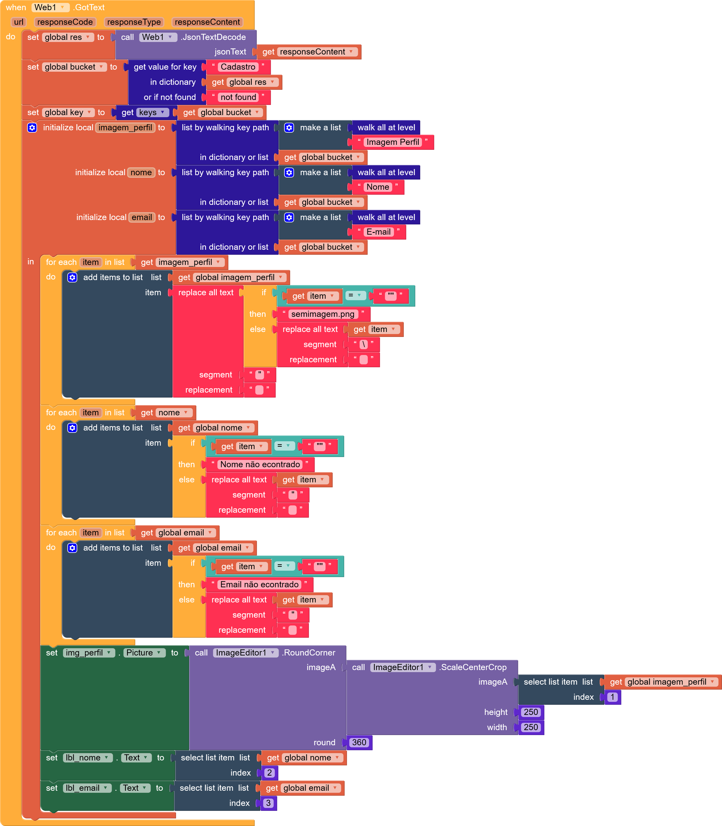 Global nome getting value after web1 got text , then how can you use it in screen init? It will throw select list item from list error. Move the name name and email to last part in web1.got text