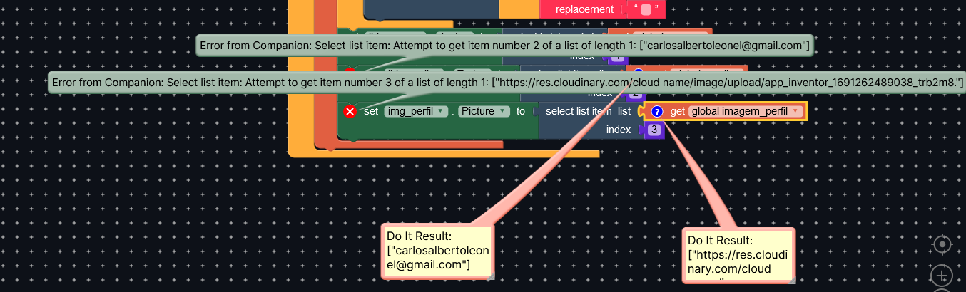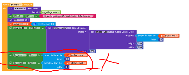 I would like to load my side menu with the user’s photo, name and email. I made the blocks below but it is giving error.