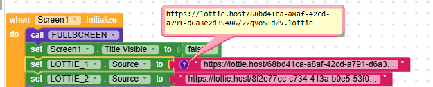 Your JSON includes complex elements such as trim paths, animated shape paths, and advanced color/path data. When Kodular reads these, it expects simple values but finds arrays instead, which causes the animation to fail and not display.