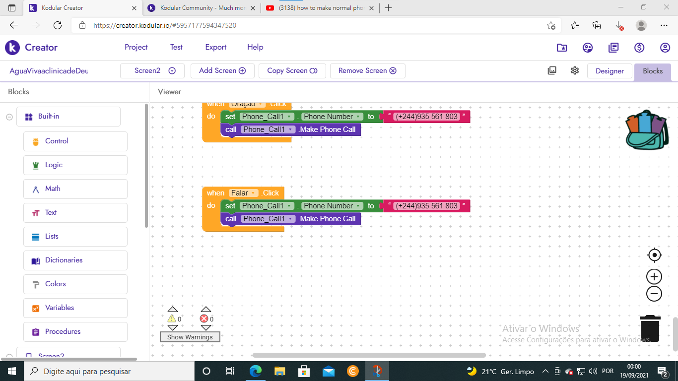 can anyone tell me why the call component is not working? how to call. I read the topics, none of the suggested options in the topics work