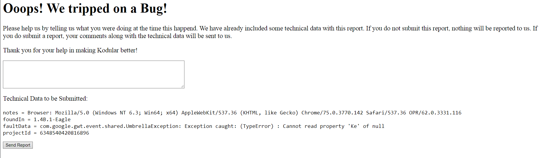 Error popup is displayed every time I click anywhere on imported page(designer), no error in blocks, screenshot attached below.I used export and import default option(.ais) of kodular.And I can’t work anymore on the screen in designer section but everything works fine on blocks section.