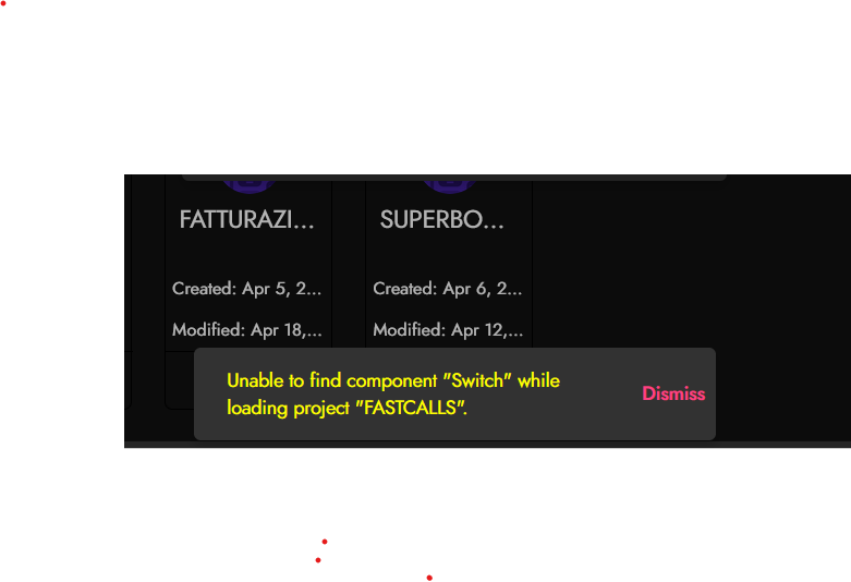 As far as I know you can try to download aia file rename it by changing ..aia to zip extract it and open the file named yourscreenname.scm and locate the component you which has error in your case you can edit you can edit Switch component or remove component and consider using after opening the project when you edit the file save it and again rename file extension from .zip to .aia and upload to kodular and then open it