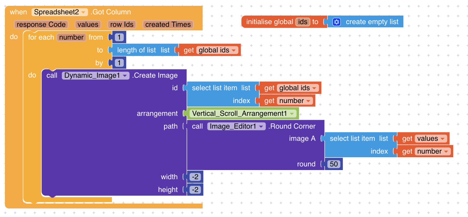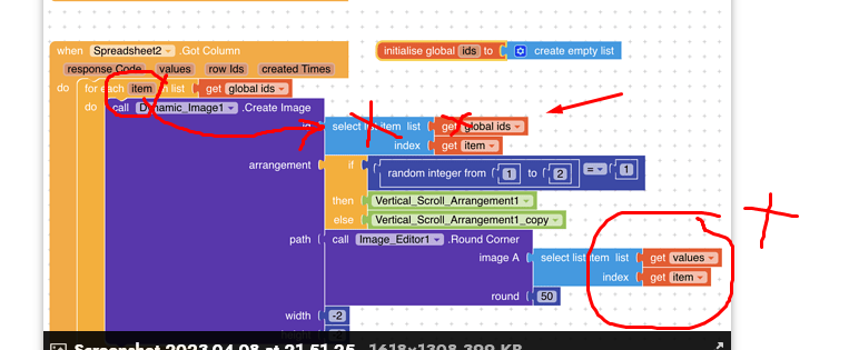 You mean the ID values or the url values? Yes, i’m using the url values - connected to the path property of dynamic image block - which will display the image from the url, and I’m using the IDs to create the unique ID for dynamic image. I don’t get it what do you mean? Do I need to define a variable to hold the URL data first, and then create the dynamic image?