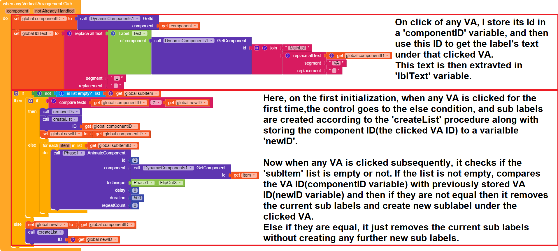 The blocks in this procedure are self explanatory. This procedure, when called, simply removes the sub labels(sub items)