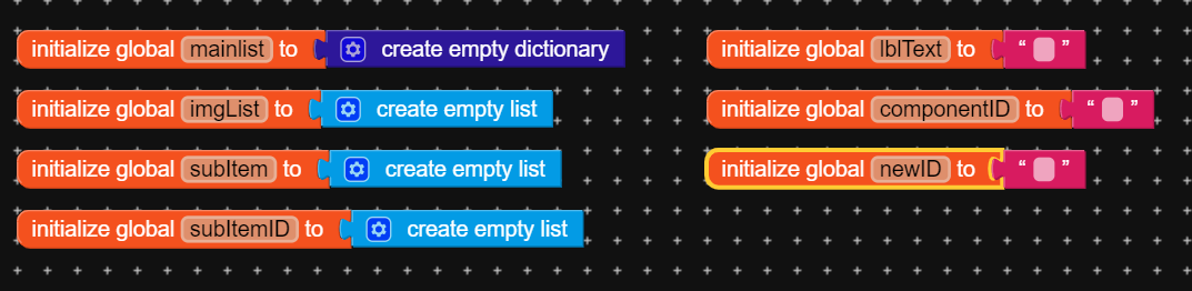 Following are the variables used creating the list.