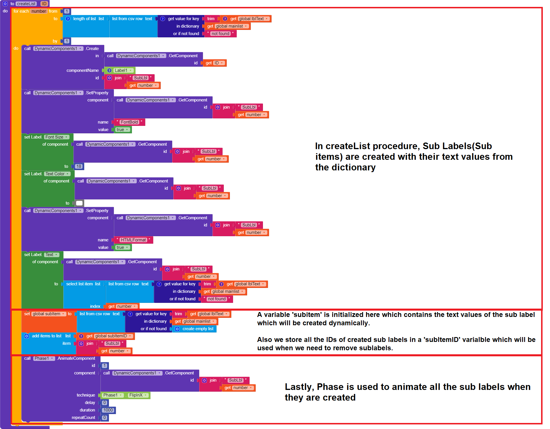 In this procedure, the sub labels are created. Along with we are using phase animation to animate the sub label when they are created