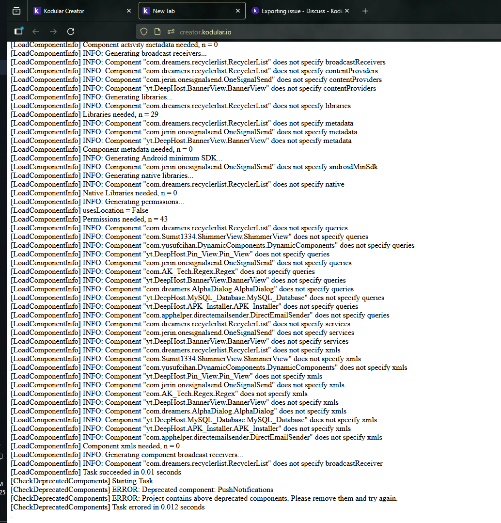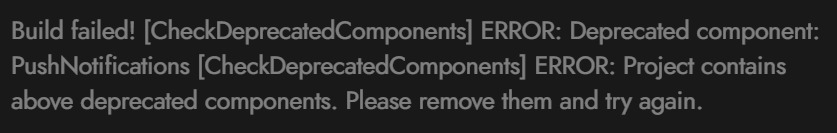 Why [CheckDeprecatedComponents] ERROR: Deprecated component: PushNotifications