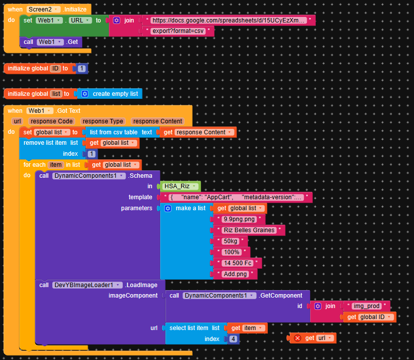 Okay but how and what are the blocks necessary to properly configure the parameters of my Schema from Google Sheet and correctly load the links of the associated images?