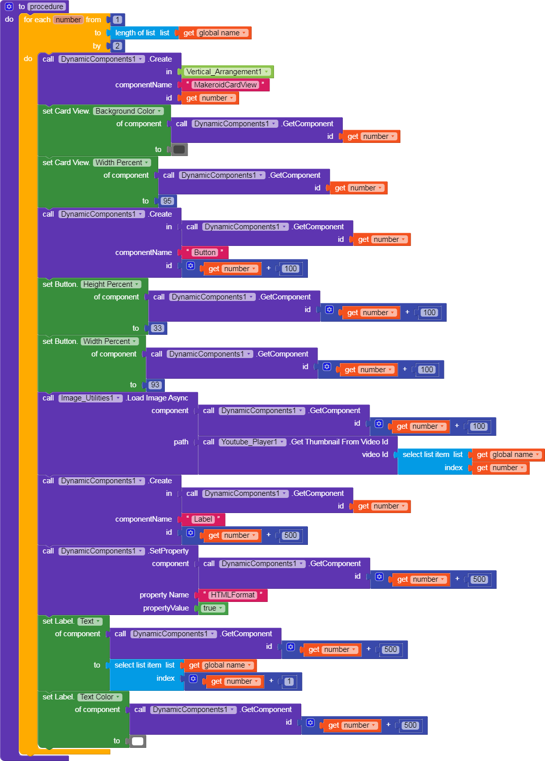 Delete Dynamic CardView component and create dynamic CardView components with my extension too. Use MakeroidCardView name for CardView.