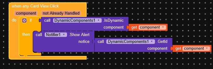 There is something wrong with my app. I use the dynamic component extension, when I click the first card the notifier shows that the id is 37.