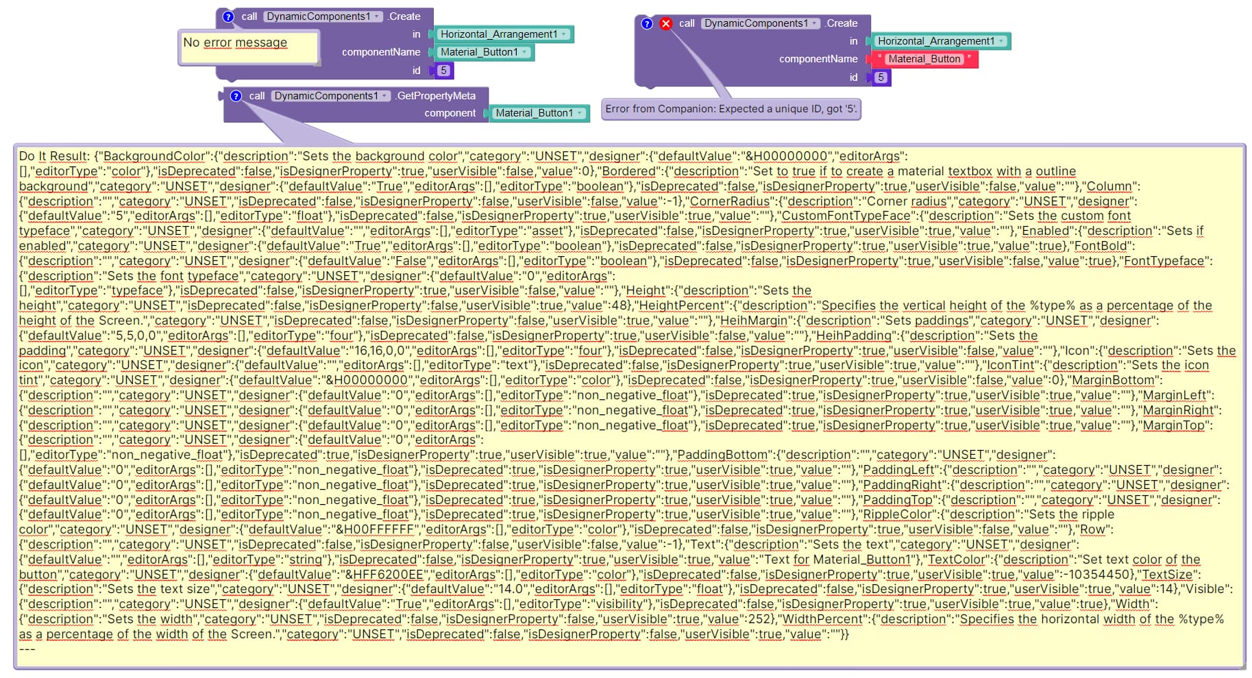 Do It Result: {âBackgroundColorâ:{âdescriptionâ:âSets the background colorâ,âcategoryâ:âUNSETâ,âdesignerâ:{âdefaultValueâ:â&H00000000â,âeditorArgsâ:,âeditorTypeâ:âcolorâ},âisDeprecatedâ:false,âisDesignerPropertyâ:true,âuserVisibleâ:false,âvalueâ:0},âBorderedâ:{âdescriptionâ:âSet to true if to create a material textbox with a outline backgroundâ,âcategoryâ:âUNSETâ,âdesignerâ:{âdefaultValueâ:âTrueâ,âeditorArgsâ:,âeditorTypeâ:âbooleanâ},âisDeprecatedâ:false,âisDesignerPropertyâ:true,âuserVisibleâ:false,âvalueâ:ââ},âColumnâ:{âdescriptionâ:ââ,âcategoryâ:âUNSETâ,âisDeprecatedâ:false,âisDesignerPropertyâ:false,âuserVisibleâ:false,âvalueâ:-1},âCornerRadiusâ:{âdescriptionâ:âCorner radiusâ,âcategoryâ:âUNSETâ,âdesignerâ:{âdefaultValueâ:â5â,âeditorArgsâ:,âeditorTypeâ:âfloatâ},âisDeprecatedâ:false,âisDesignerPropertyâ:true,âuserVisibleâ:true,âvalueâ:ââ},âCustomFontTypeFaceâ:{âdescriptionâ:âSets the custom font typefaceâ,âcategoryâ:âUNSETâ,âdesignerâ:{âdefaultValueâ:ââ,âeditorArgsâ:,âeditorTypeâ:âassetâ},âisDeprecatedâ:false,âisDesignerPropertyâ:true,âuserVisibleâ:true,âvalueâ:ââ},âEnabledâ:{âdescriptionâ:âSets if enabledâ,âcategoryâ:âUNSETâ,âdesignerâ:{âdefaultValueâ:âTrueâ,âeditorArgsâ:,âeditorTypeâ:âbooleanâ},âisDeprecatedâ:false,âisDesignerPropertyâ:true,âuserVisibleâ:true,âvalueâ:true},âFontBoldâ:{âdescriptionâ:ââ,âcategoryâ:âUNSETâ,âdesignerâ:{âdefaultValueâ:âFalseâ,âeditorArgsâ:,âeditorTypeâ:âbooleanâ},âisDeprecatedâ:false,âisDesignerPropertyâ:true,âuserVisibleâ:false,âvalueâ:true},âFontTypefaceâ:{âdescriptionâ:âSets the font typefaceâ,âcategoryâ:âUNSETâ,âdesignerâ:{âdefaultValueâ:â0â,âeditorArgsâ:,âeditorTypeâ:âtypefaceâ},âisDeprecatedâ:false,âisDesignerPropertyâ:true,âuserVisibleâ:false,âvalueâ:ââ},âHeightâ:{âdescriptionâ:âSets the heightâ,âcategoryâ:âUNSETâ,âisDeprecatedâ:false,âisDesignerPropertyâ:false,âuserVisibleâ:true,âvalueâ:48},âHeightPercentâ:{âdescriptionâ:âSpecifies the vertical height of the %type% as a percentage of the height of the Screen.â,âcategoryâ:âUNSETâ,âisDeprecatedâ:false,âisDesignerPropertyâ:false,âuserVisibleâ:true,âvalueâ:ââ},âHeihMarginâ:{âdescriptionâ:âSets paddingsâ,âcategoryâ:âUNSETâ,âdesignerâ:{âdefaultValueâ:â5,5,0,0â,âeditorArgsâ:,âeditorTypeâ:âfourâ},âisDeprecatedâ:false,âisDesignerPropertyâ:true,âuserVisibleâ:false,âvalueâ:ââ},âHeihPaddingâ:{âdescriptionâ:âSets the paddingâ,âcategoryâ:âUNSETâ,âdesignerâ:{âdefaultValueâ:â16,16,0,0â,âeditorArgsâ:,âeditorTypeâ:âfourâ},âisDeprecatedâ:false,âisDesignerPropertyâ:true,âuserVisibleâ:false,âvalueâ:ââ},âIconâ:{âdescriptionâ:âSets the iconâ,âcategoryâ:âUNSETâ,âdesignerâ:{âdefaultValueâ:ââ,âeditorArgsâ:,âeditorTypeâ:âtextâ},âisDeprecatedâ:false,âisDesignerPropertyâ:true,âuserVisibleâ:true,âvalueâ:ââ},âIconTintâ:{âdescriptionâ:âSets the icon tintâ,âcategoryâ:âUNSETâ,âdesignerâ:{âdefaultValueâ:â&H00000000â,âeditorArgsâ:,âeditorTypeâ:âcolorâ},âisDeprecatedâ:false,âisDesignerPropertyâ:true,âuserVisibleâ:false,âvalueâ:0},âMarginBottomâ:{âdescriptionâ:ââ,âcategoryâ:âUNSETâ,âdesignerâ:{âdefaultValueâ:â0â,âeditorArgsâ:,âeditorTypeâ:ânon_negative_floatâ},âisDeprecatedâ:true,âisDesignerPropertyâ:true,âuserVisibleâ:true,âvalueâ:ââ},âMarginLeftâ:{âdescriptionâ:ââ,âcategoryâ:âUNSETâ,âdesignerâ:{âdefaultValueâ:â0â,âeditorArgsâ:,âeditorTypeâ:ânon_negative_floatâ},âisDeprecatedâ:true,âisDesignerPropertyâ:true,âuserVisibleâ:true,âvalueâ:ââ},âMarginRightâ:{âdescriptionâ:ââ,âcategoryâ:âUNSETâ,âdesignerâ:{âdefaultValueâ:â0â,âeditorArgsâ:,âeditorTypeâ:ânon_negative_floatâ},âisDeprecatedâ:true,âisDesignerPropertyâ:true,âuserVisibleâ:true,âvalueâ:ââ},âMarginTopâ:{âdescriptionâ:ââ,âcategoryâ:âUNSETâ,âdesignerâ:{âdefaultValueâ:â0â,âeditorArgsâ:,âeditorTypeâ:ânon_negative_floatâ},âisDeprecatedâ:true,âisDesignerPropertyâ:true,âuserVisibleâ:true,âvalueâ:ââ},âPaddingBottomâ:{âdescriptionâ:ââ,âcategoryâ:âUNSETâ,âdesignerâ:{âdefaultValueâ:â0â,âeditorArgsâ:,âeditorTypeâ:ânon_negative_floatâ},âisDeprecatedâ:true,âisDesignerPropertyâ:true,âuserVisibleâ:true,âvalueâ:ââ},âPaddingLeftâ:{âdescriptionâ:ââ,âcategoryâ:âUNSETâ,âdesignerâ:{âdefaultValueâ:â0â,âeditorArgsâ:,âeditorTypeâ:ânon_negative_floatâ},âisDeprecatedâ:true,âisDesignerPropertyâ:true,âuserVisibleâ:true,âvalueâ:ââ},âPaddingRightâ:{âdescriptionâ:ââ,âcategoryâ:âUNSETâ,âdesignerâ:{âdefaultValueâ:â0â,âeditorArgsâ:,âeditorTypeâ:ânon_negative_floatâ},âisDeprecatedâ:true,âisDesignerPropertyâ:true,âuserVisibleâ:true,âvalueâ:ââ},âPaddingTopâ:{âdescriptionâ:ââ,âcategoryâ:âUNSETâ,âdesignerâ:{âdefaultValueâ:â0â,âeditorArgsâ:,âeditorTypeâ:ânon_negative_floatâ},âisDeprecatedâ:true,âisDesignerPropertyâ:true,âuserVisibleâ:true,âvalueâ:ââ},âRippleColorâ:{âdescriptionâ:âSets the ripple colorâ,âcategoryâ:âUNSETâ,âdesignerâ:{âdefaultValueâ:â&H00FFFFFFâ,âeditorArgsâ:,âeditorTypeâ:âcolorâ},âisDeprecatedâ:false,âisDesignerPropertyâ:true,âuserVisibleâ:false,âvalueâ:ââ},âRowâ:{âdescriptionâ:ââ,âcategoryâ:âUNSETâ,âisDeprecatedâ:false,âisDesignerPropertyâ:false,âuserVisibleâ:false,âvalueâ:-1},âTextâ:{âdescriptionâ:âSets the textâ,âcategoryâ:âUNSETâ,âdesignerâ:{âdefaultValueâ:ââ,âeditorArgsâ:,âeditorTypeâ:âstringâ},âisDeprecatedâ:false,âisDesignerPropertyâ:true,âuserVisibleâ:true,âvalueâ:âText for Material_Button1â},âTextColorâ:{âdescriptionâ:âSet text color of the buttonâ,âcategoryâ:âUNSET
