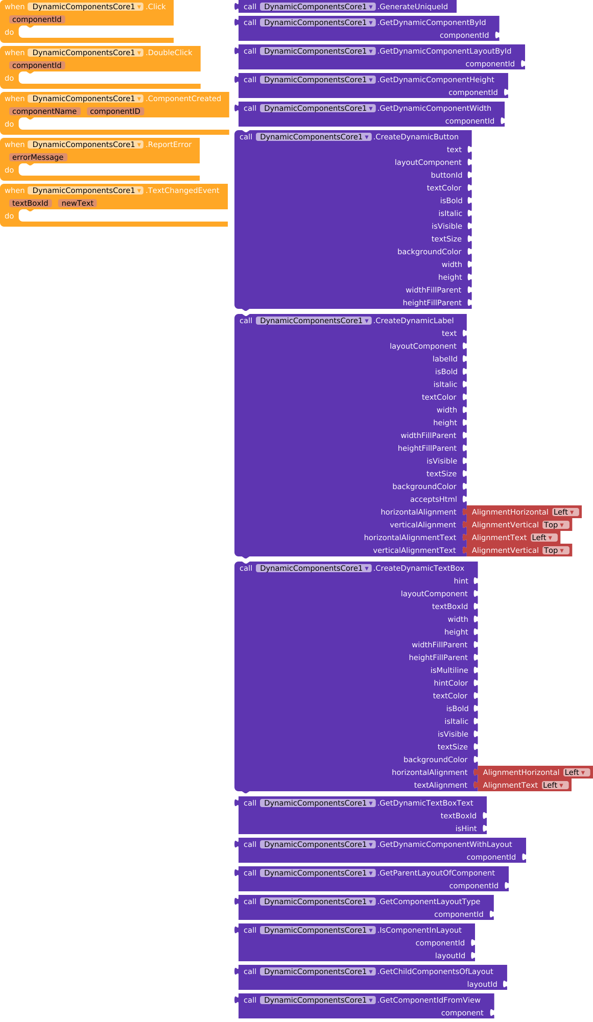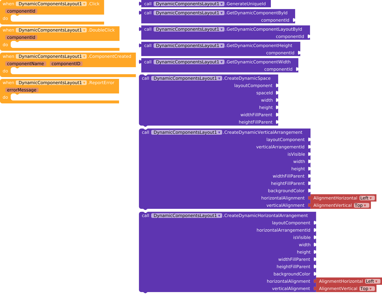 Extension for creating dynamic components associated with a layout in MIT App Inventor 2