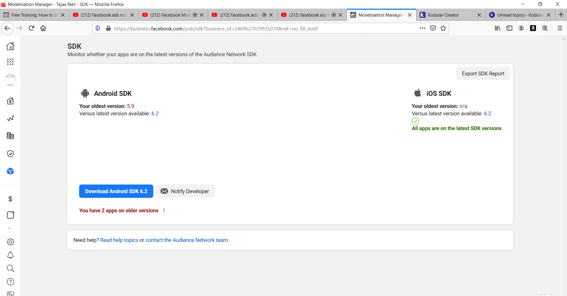 My Facebook audience network Ads not showing in kodular application is that any reason behind it?