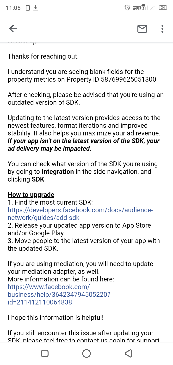 I tried changing blocks thrice using different methods, still no difference. Note: My app has already been approved by fb and is in playstore. So, from there side everything is fine. Ads load but do not show. I have tried :