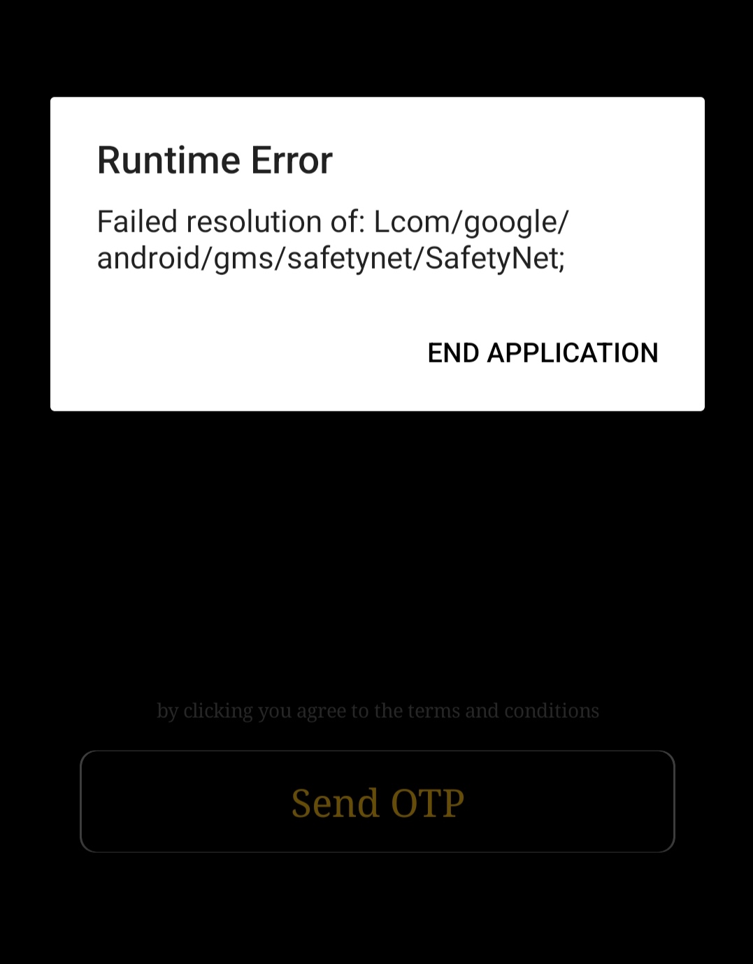 appear failed resolution of:Lcom/google/android/gms/safetynet!