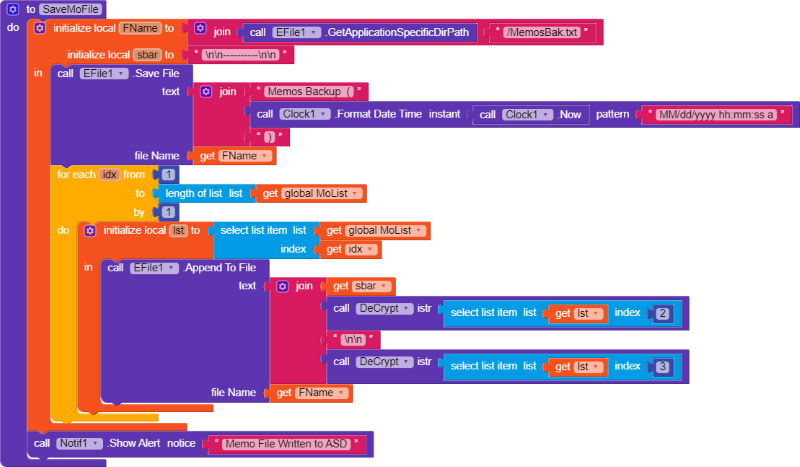 This code above works as expected. Notice I use the extension EFile to get the ASD directory, then write a bunch of lines to a text file in that directory.