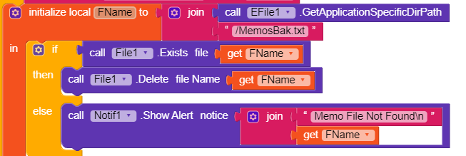 With the extension EFile I am able to write a file to this directory. With the built-in Storage-File blocks I’m not able to write to or share files from this directory. It says the file does not exist. I found a file manager, after a lot of searching, that shows me the file is there. EFile does not have a delete method.