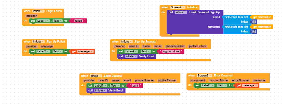 Like in this image all blocks work well except sign up success and login success, but when i remove the verify email block then the label test changes as coded.