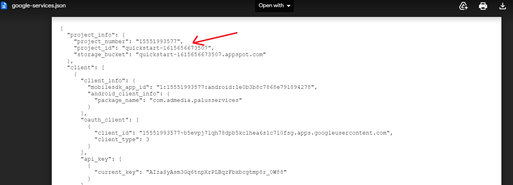 Open json with any text editor, for example notepad and between project number and project_id add "firebase_url": "https://your-projekt-id.firebaseio.com",