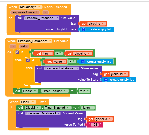 Oh sorry.. When media uploaded, save the url in one variable.. Finaly use that variable in when clock timer.. I have added 123 in value place but there url variable must come.. Instead of url i was tested with variable and it works fine